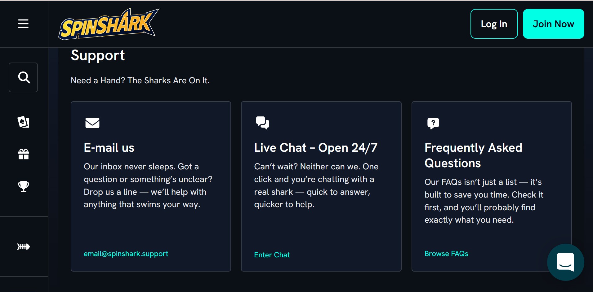 Does Spinshark offer customer support?